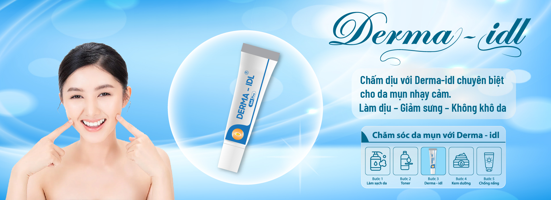 Tạm biệt nỗi lo về mụn và chào đón làn da khỏe đẹp! Derma IDL, sản phẩm được công ty dược mỹ phẩm Gamma sản xuất đạt chuẩn GMP, giúp làm sạch sâu, giảm mụn hiệu quả và ngăn ngừa tái phát. Nhờ đó, bạn sẽ có được một làn da mịn màng, luôn sẵn sàng để tự tin tỏa sáng mỗi ngày.